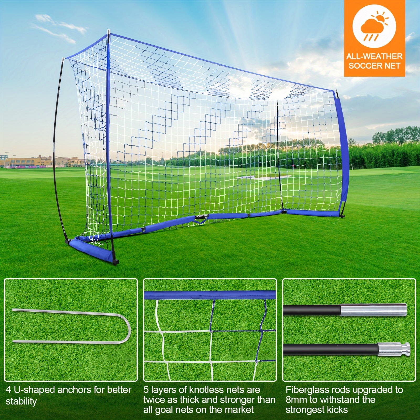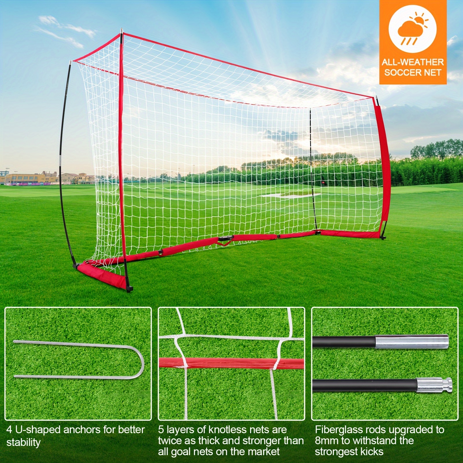 Take your game on-the-go with our 12 Ft X 6 Ft Heavy Duty Portable Soccer Goal! With a convenient carrying bag for easy storage and transport, you can set up and play anytime, anywhere. The heavy-duty metal square tube base and durable nylon net provide lasting stability. Flexible fiberglass rods make installation a breeze. Dominate the field with this must-have equipment!