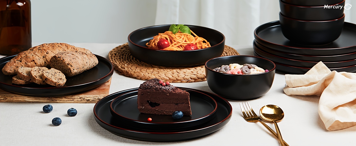 Elevate your dining experience with our 12 piece set of sleek and modern matte black dinnerware! Made of durable stoneware, this set promises to impress with its sophisticated design and lasting quality. Perfect for any occasion, enjoy the benefits of effortlessly stylish dinnerware.