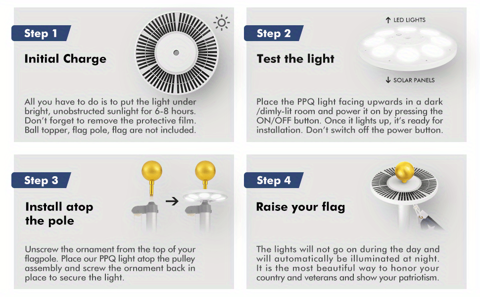 Light up the night with our Solar LED Flagpole Light! Compliant with the U.S. flag code, this light ensures your flag is properly illuminated. No batteries needed - the solar battery provides eco-friendly, hassle-free power. Show your patriotic pride day and night with this convenient and efficient flagpole light.