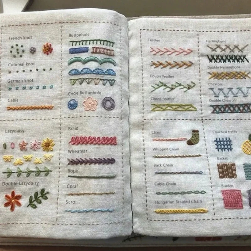 5. Improve your crafting skills with our Stitch Book, perfect for beginners and experienced makers. Each embroidery stitch on this linen has an English name, so you can start sewing according to the stitch name.