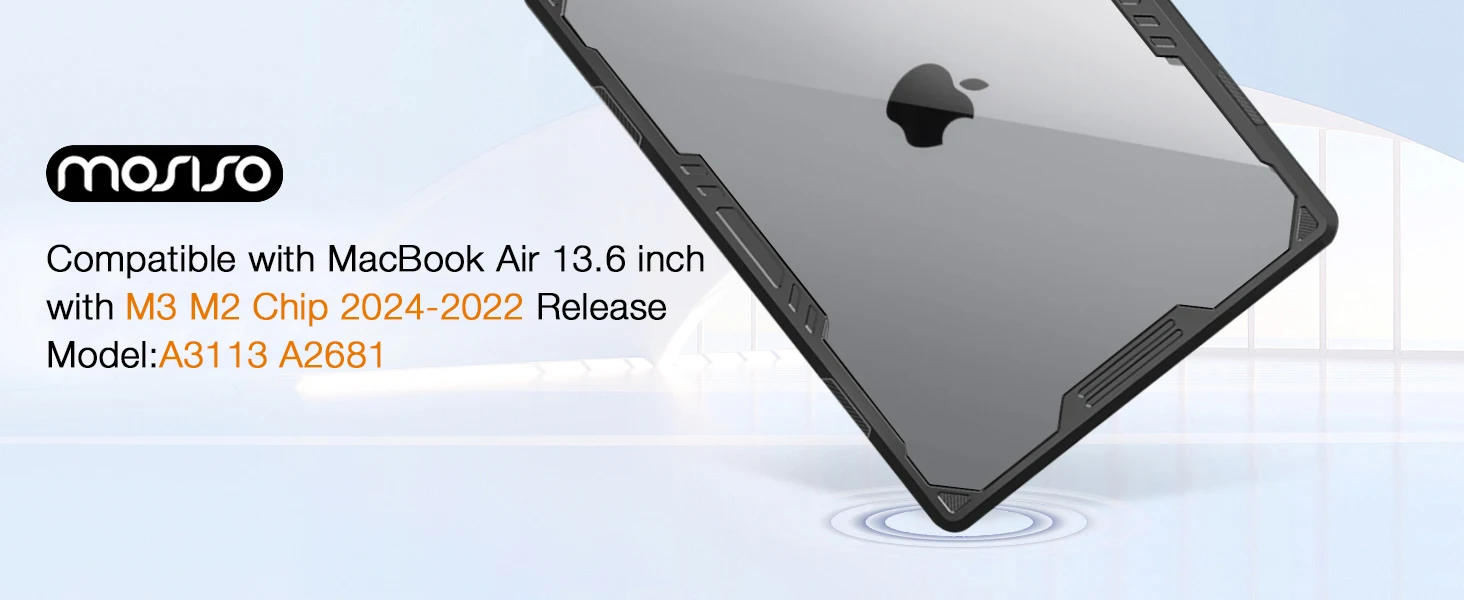 Protect and personalize your MacBook Air 13.6 inch with the Mosiso Laptop Cover. Made of durable plastic, it keeps your laptop safe from scratches and dings. Plus, the cover doesn't have an Apple logo, giving your laptop a unique and sleek look.