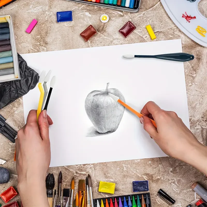 Create beautiful and detailed sketches with our 30-piece Sketching & Drawing Tool Kit! This set includes everything you need to blend, shade, and highlight your drawings, such as blending stumps and tortillions. Plus, the art wipes, scrapers, and dual-tip sponge pens allow for endless possibilities. Unleash your creativity today!