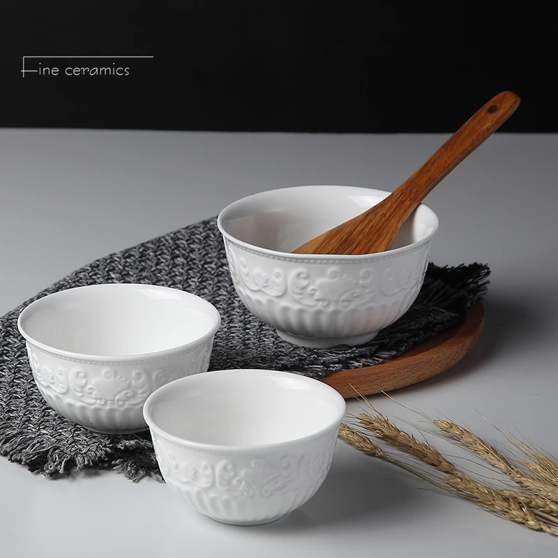 4/5/6inch, white embossed porcelain salad bowls, ceramic cooking food bowl, japanese rice bowl , kitchen food container, small