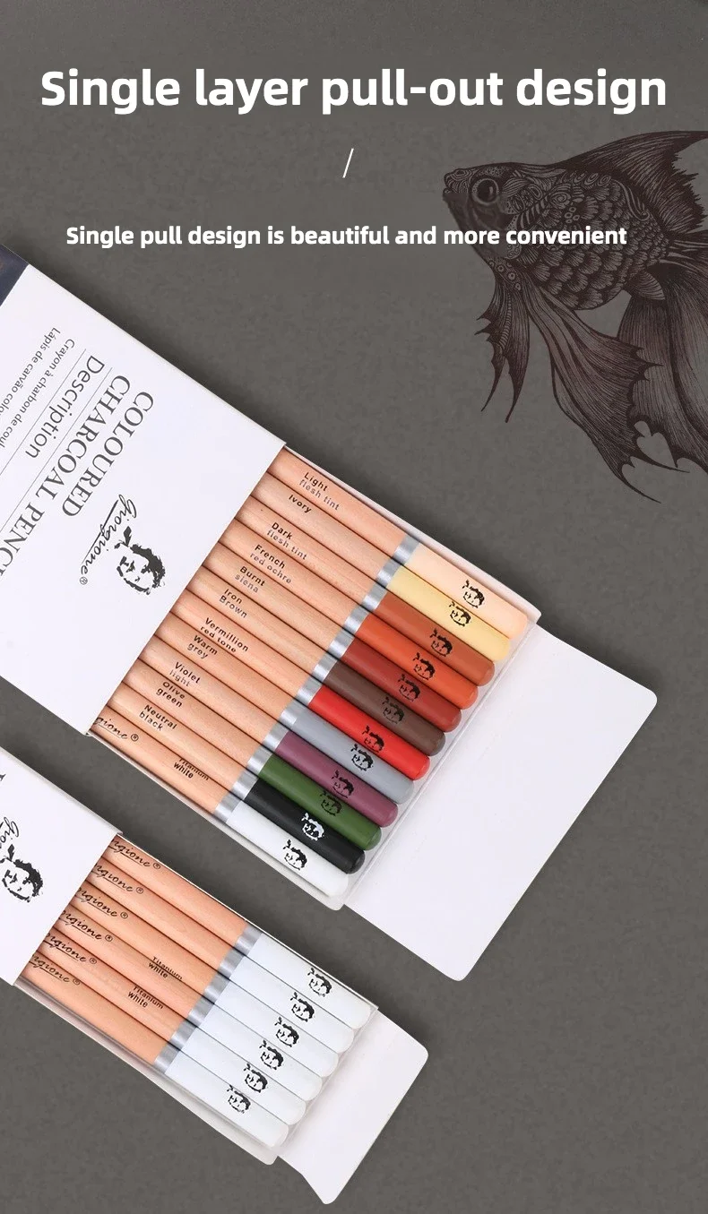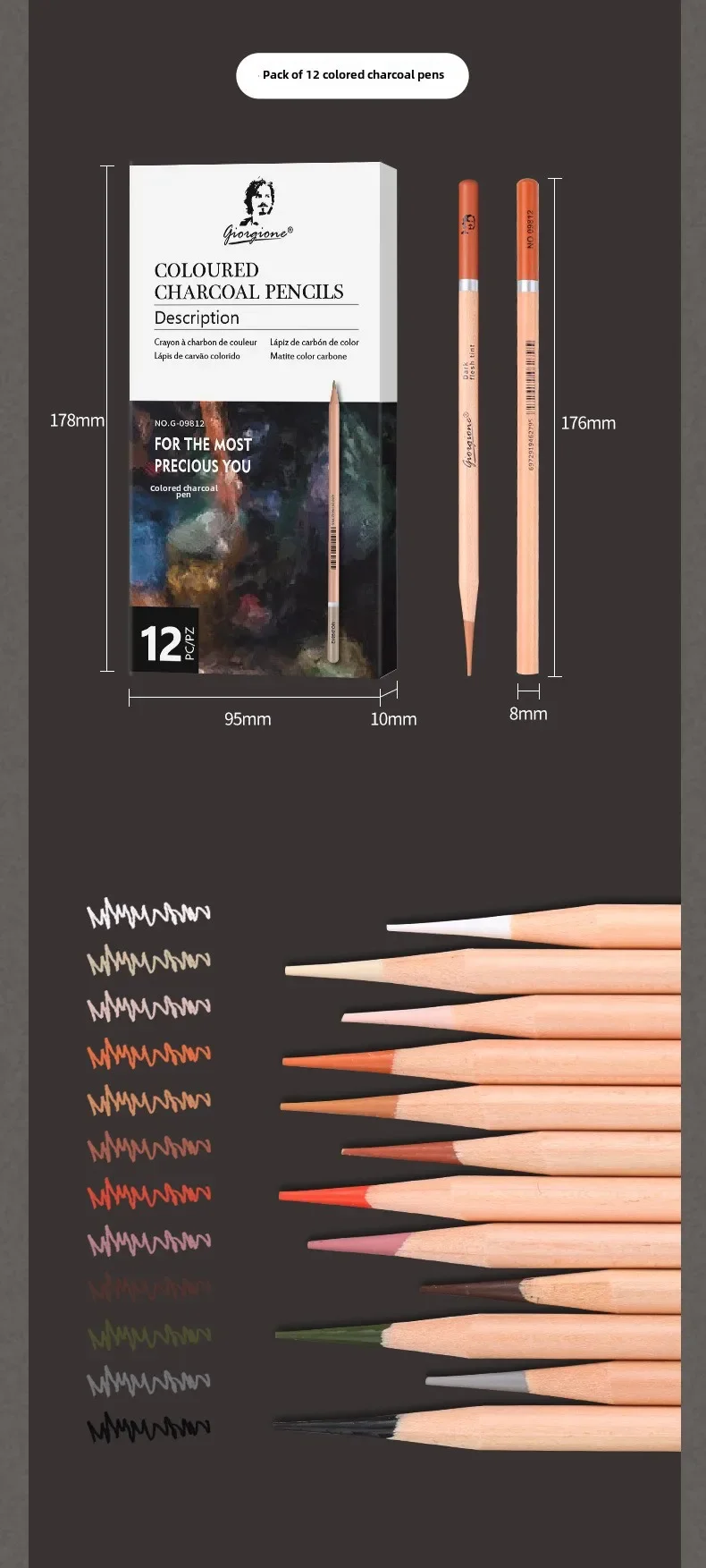 Unleash your creativity with our 6 piece charcoal pencil set, featuring a smooth, log matte finish for effortless drawing and sketching. Includes 12 vibrant color options for added depth and dimension to your artwork. Elevate your art game with this must-have set!