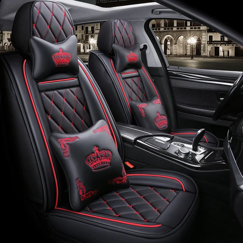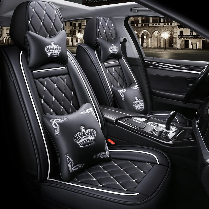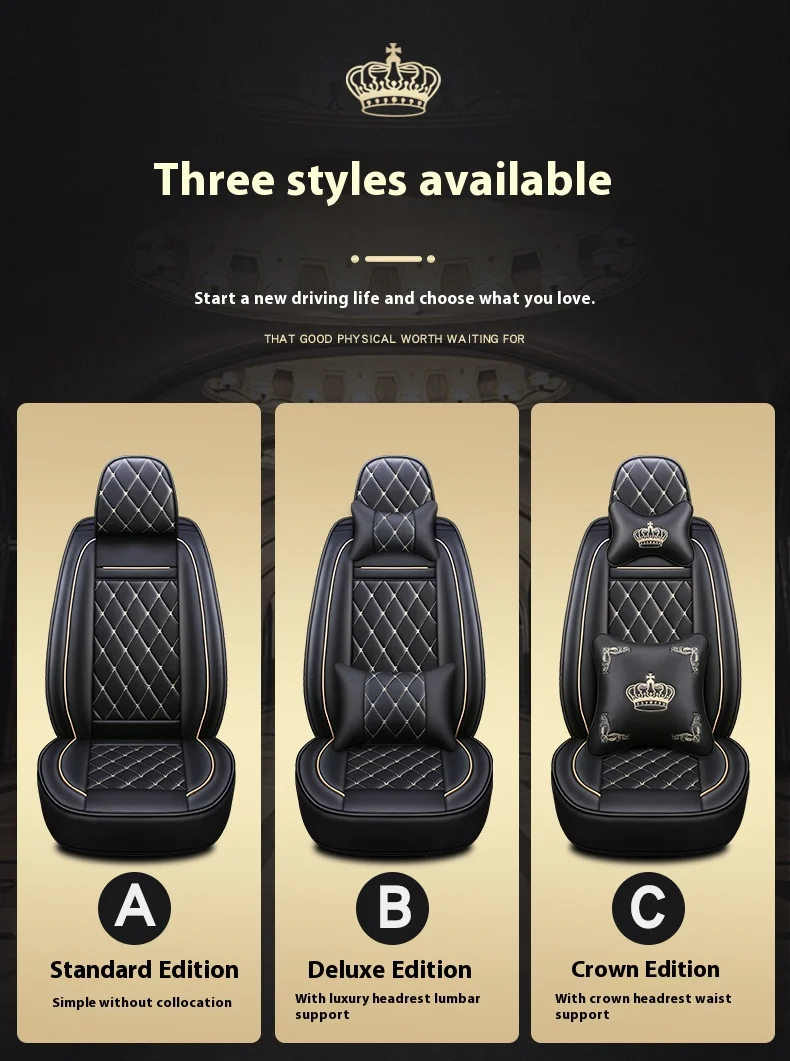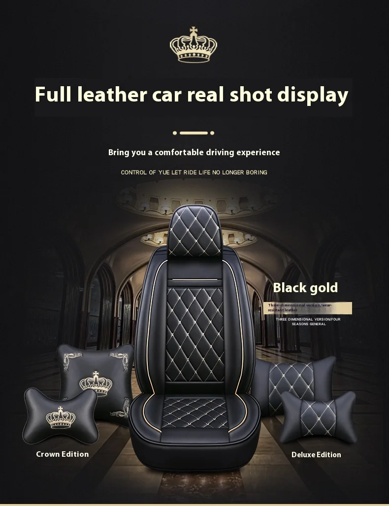 Caranger Breathable Four Seasons Crown Split Full Leather Car Seat Cushion