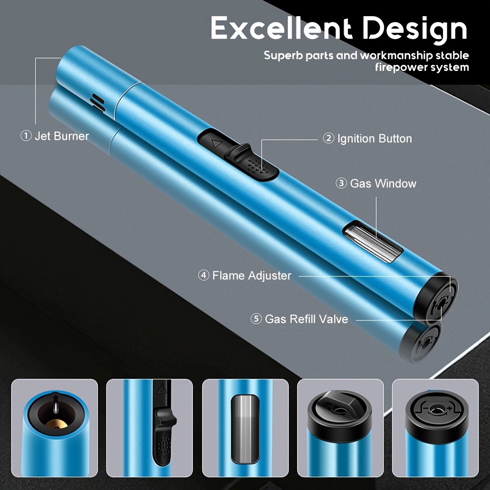 Discover the power of the Butane Torch Lighters Jet Torch Lighters Bbq Torch Lighters! Made with lightweight aluminum alloy and fueled by butane for a strong, steady flame. Perfect for outdoor adventures, BBQs, and more. Get ready to ignite your senses!