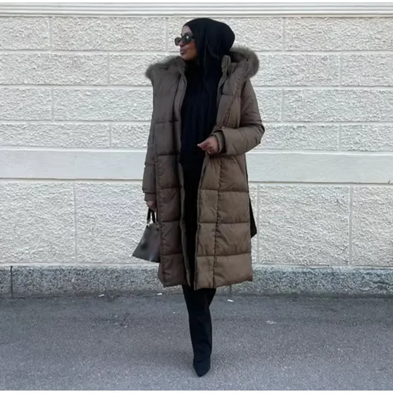 Wrap yourself in comfort and style with our Lace Up Cotton Jacket. Made with high-quality cotton, this full-length coat offers warmth and durability. The hooded faux fur collar adds a touch of sophistication, while the zipper closure ensures a secure fit. Stay cozy all winter long with this must-have wardrobe staple.