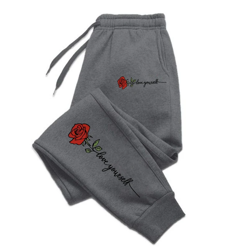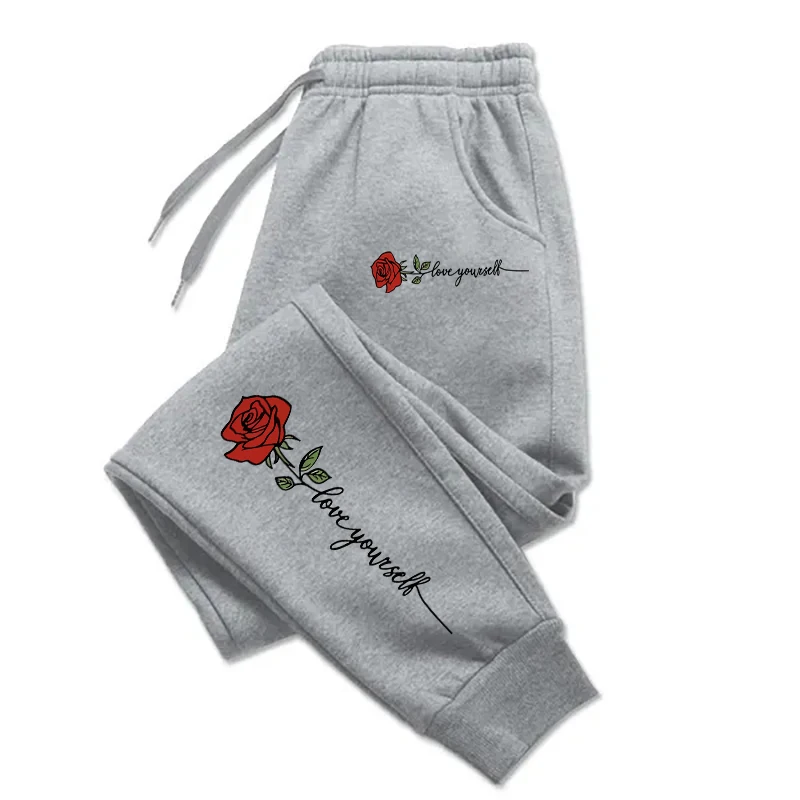 Teekossc Rose Love Yourself Printed Drawstring Sweatpants