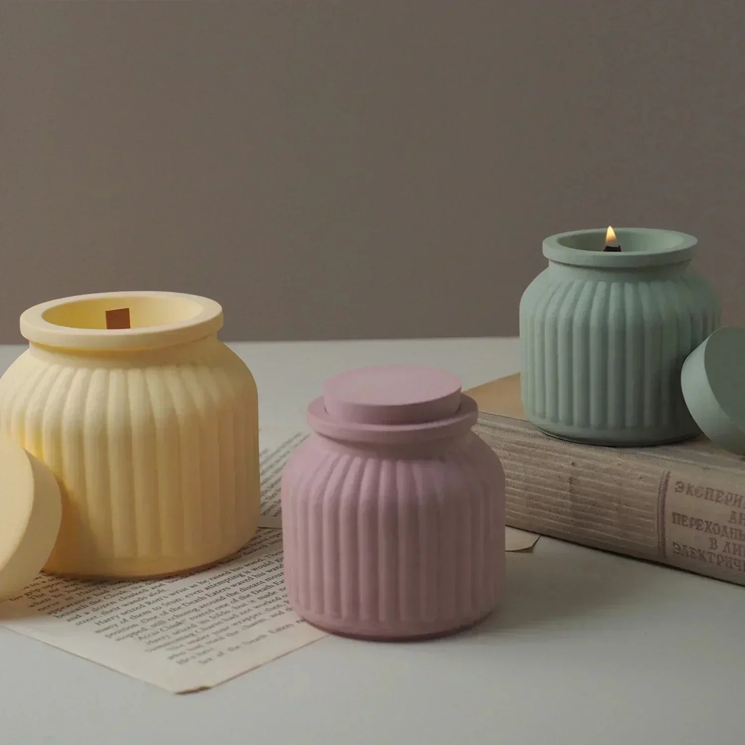 Round Candle Jar Mold with Lid