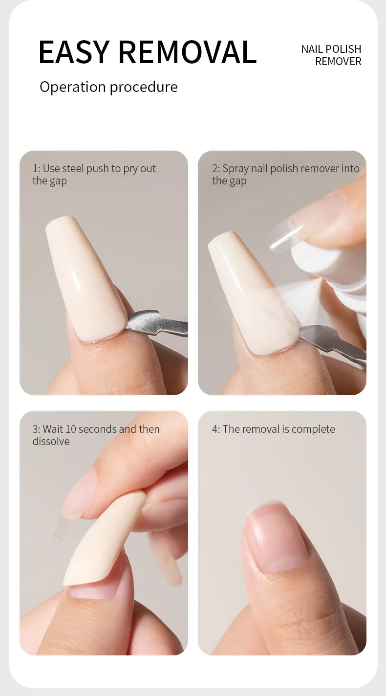 Experience effortless nail care with RSNAIL 100ml Nail Glue Remover! This convenient spray-on formula dissolves stubborn nail glue quickly and efficiently, making it a breeze to remove artificial nails. Your hands deserve gentle yet effective treatment—transform your nail routine today!