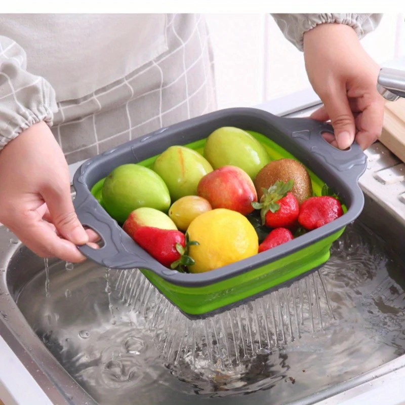 Experience the convenience and versatility of our Silicone Folding Drain Basket! Made with durable silicone, this basket effortlessly expands to hold all your fruits, vegetables, or dishes. With its foldable design, it's perfect for storage and travel. Say goodbye to bulky and rigid strainers, and hello to flexible and practical cooking!