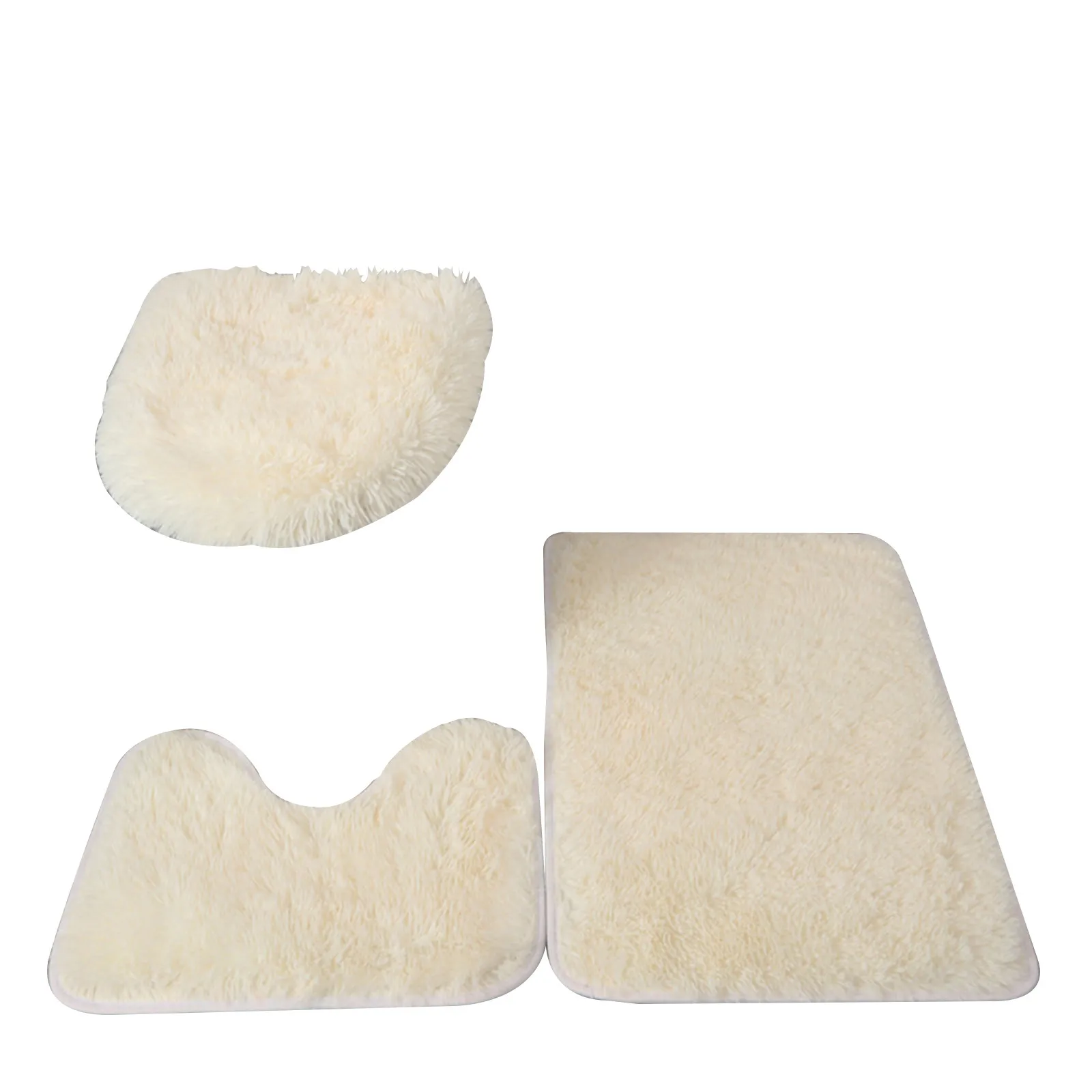 3pc Bathroom Set Rug Mat Toilet Lid Cover Plain Solid Color Bathmats