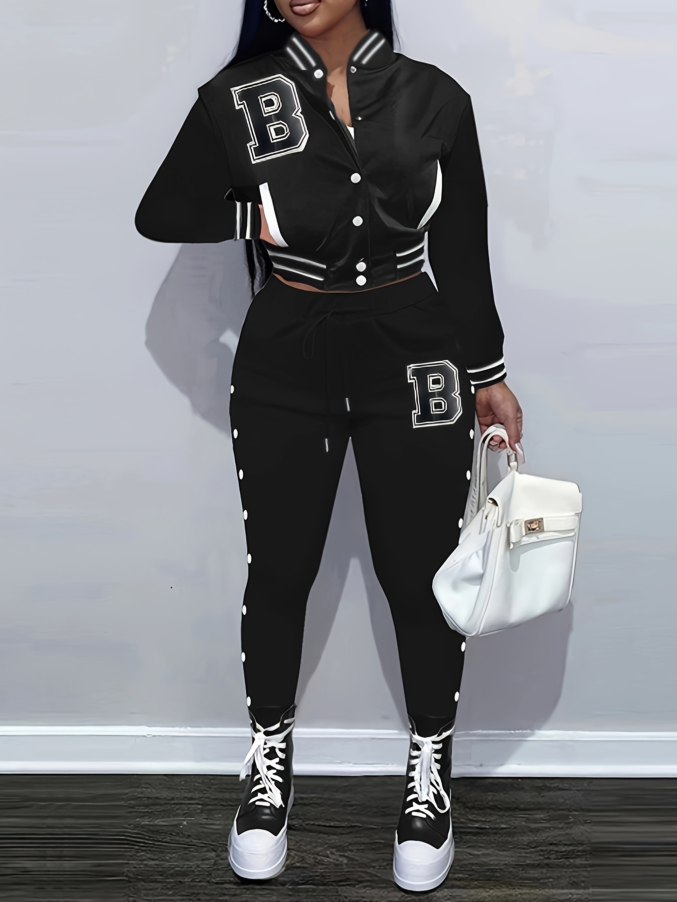 Ready to show off your bold style? This jacket and pants set is made with 95% polyester and 5% spandex for a comfortable fit. The letter "B" patches & buttons add a touch of personality to this trendy outfit. Stand out from the crowd and make a statement with this unique set!
